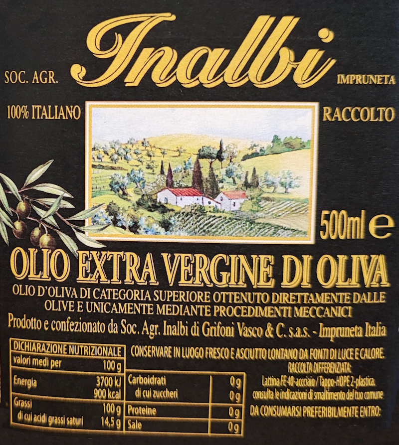 Il nostro olio è stato selezionato, dalla Camera di commercio, come tra i migliori della provincia di Firenze: acidità 0,15%, n. perossidi 5,7 (meq 02/kg), tocoferoli e biofenoli 550 mg/Kg.
