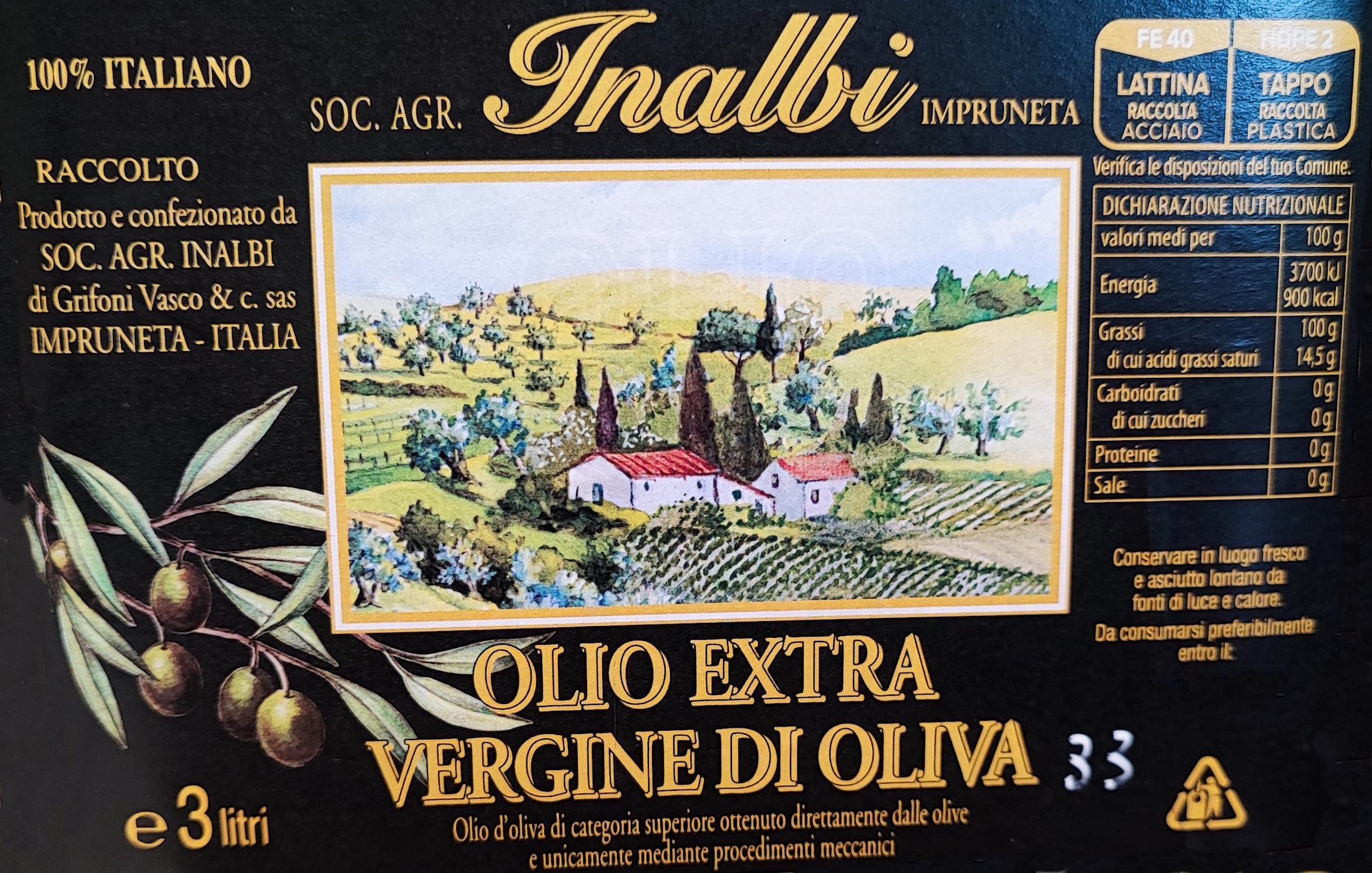 Il nostro olio è stato selezionato, dalla Camera di commercio, come tra i migliori della provincia di Firenze: acidità 0,15%, n. perossidi 5,7 (meq 02/kg), tocoferoli e biofenoli 550 mg/Kg.